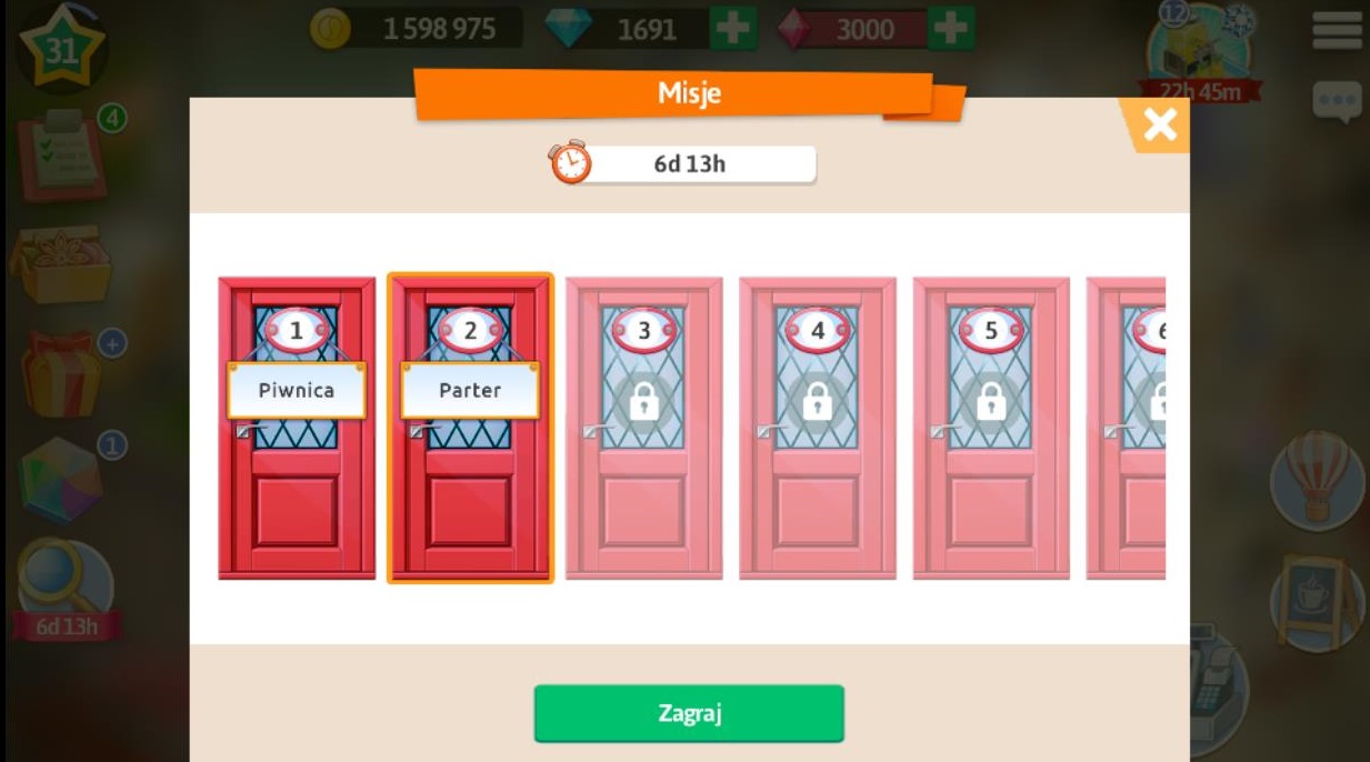 Otwórzmy drzwi do sali wystawowej (5 piorunów), w której na tablicy musimy powiesić pierwszy obraz. W nagrodę otrzymujemy 15 piorunów, 3 diamenty i wspomagacz “odświeżenie zamówień”.