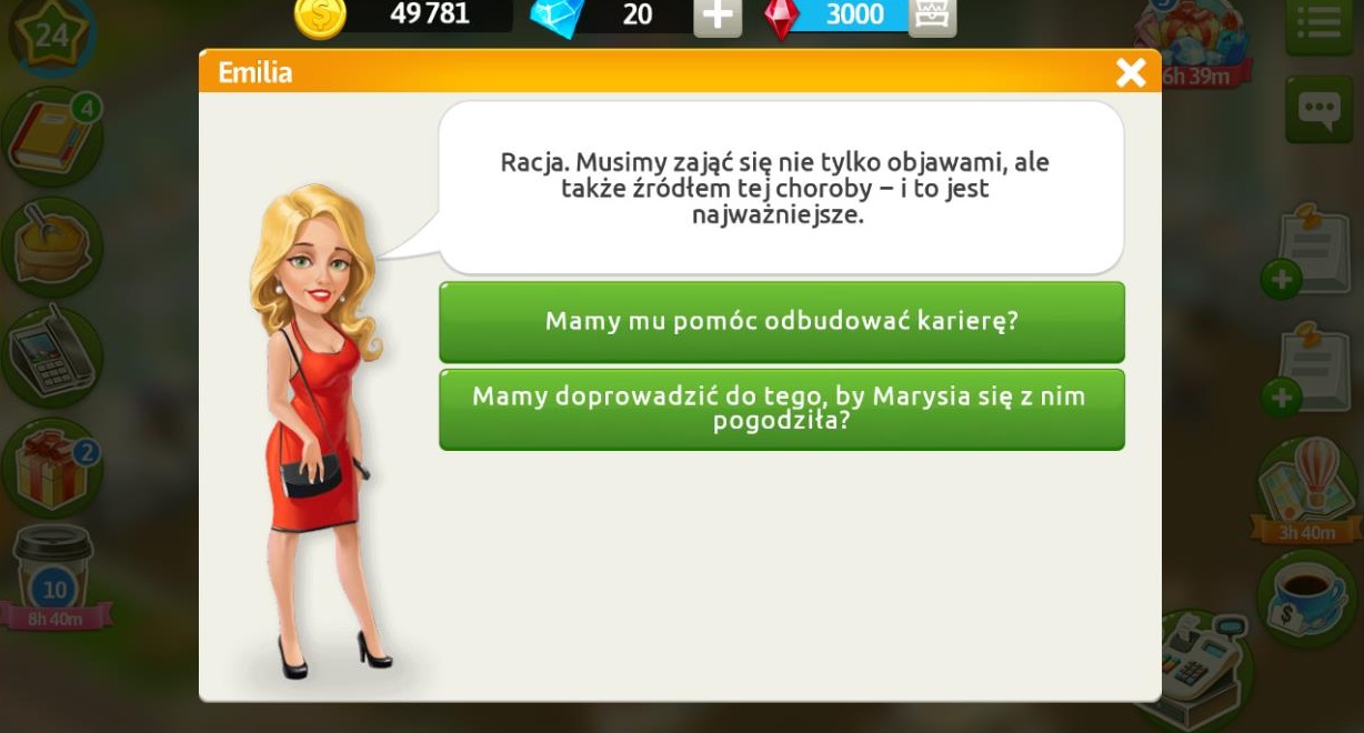 Klientka natychmiast chce pomóc swojemu przyjacielowi wyjść ze stanu depresji. Musimy porozmawiać z Jagodą, Felicją i Dariuszem pytając jak radzą sobie z depresją. Wszyscy wymienieni mają z Konradem coś wspólnego, są osobami publicznymi, które długo i ciężko pracowały by osiągnąć sukces. Borysa i Piotrowicza również możemy zapytać.
