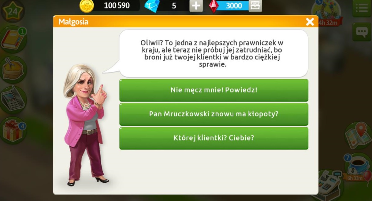 Klientka proponuje współpracą, nie zna nikogo w miasteczku więc nasza pomoc będzie potrzebna. Jeśli wygra sprawę dostaniemy diamenty. Najpierw musimy znaleźć porządnego detektywa, kontaktowała się już z Henrykiem Domańskim, który rozwikłał skomplikowaną sprawę usiłowania morderstwa, ale odmówił.