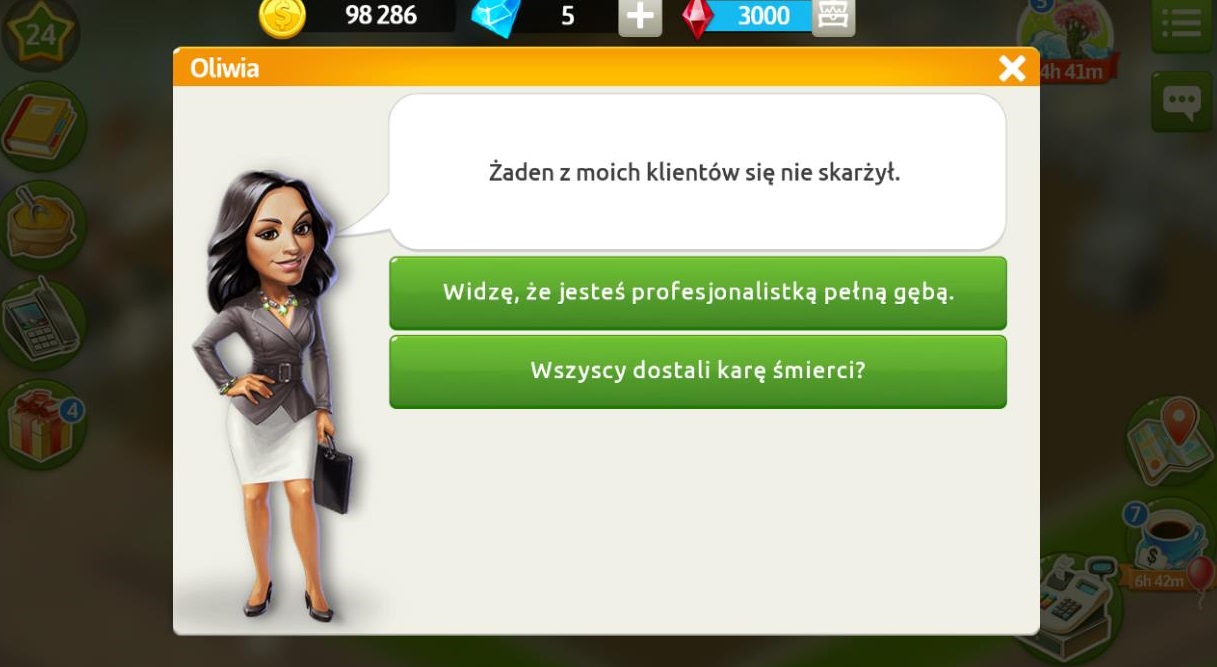 Okazuje się, że Oliwia skradła serce policjanta, który nie może przestać o niej myśleć. Dlatego prosi nas o zaproszenie w jego imieniu nowej klientki na randkę, szybko zmienia jednak zdanie i stwierdza, że powinniśmy popytać innych klientów co sądzą o nowej kobiecie.