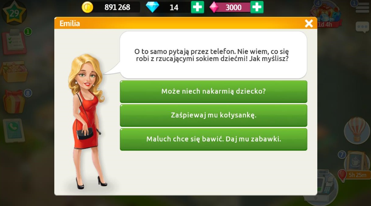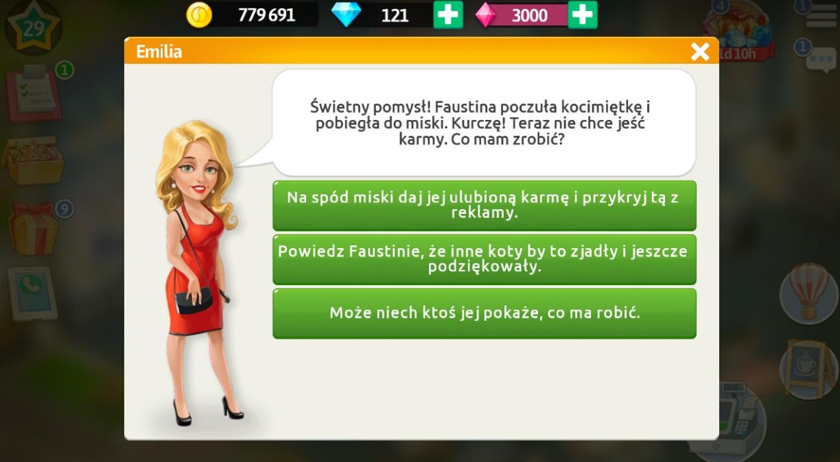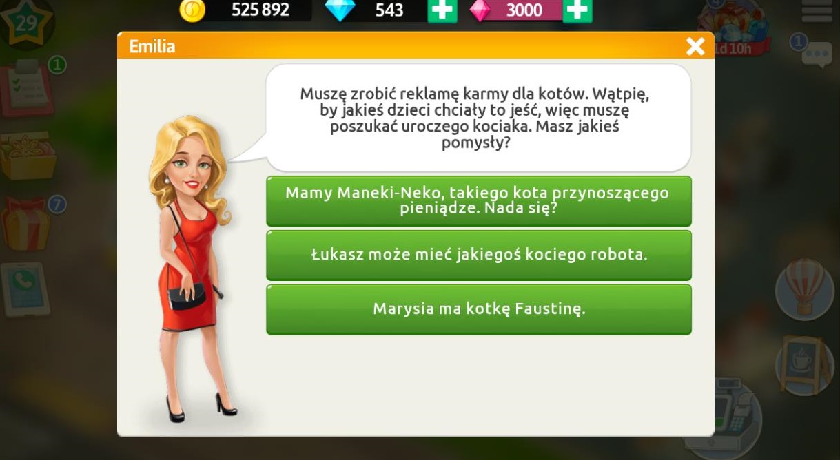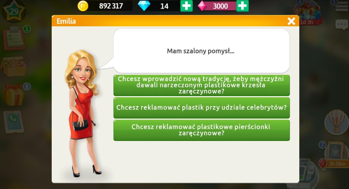 Po rozmowie z klientami wracamy do Emilii, która jest załamana, ponieważ nikt nie może pomóc w reklamie.